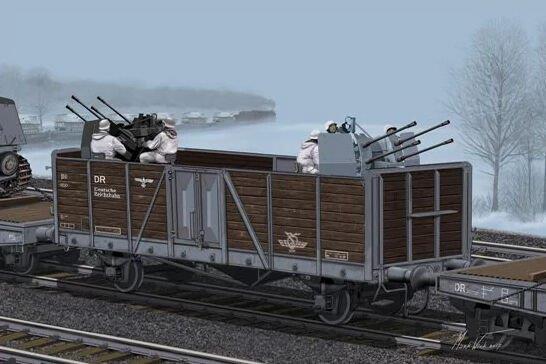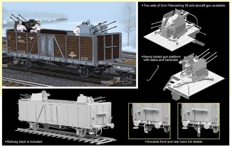 GERMAN RAILWAY GONDOLA TYP OMMR W/2CM FLAKVIERLING 38 / MILITARIA / ESCALA 1/35